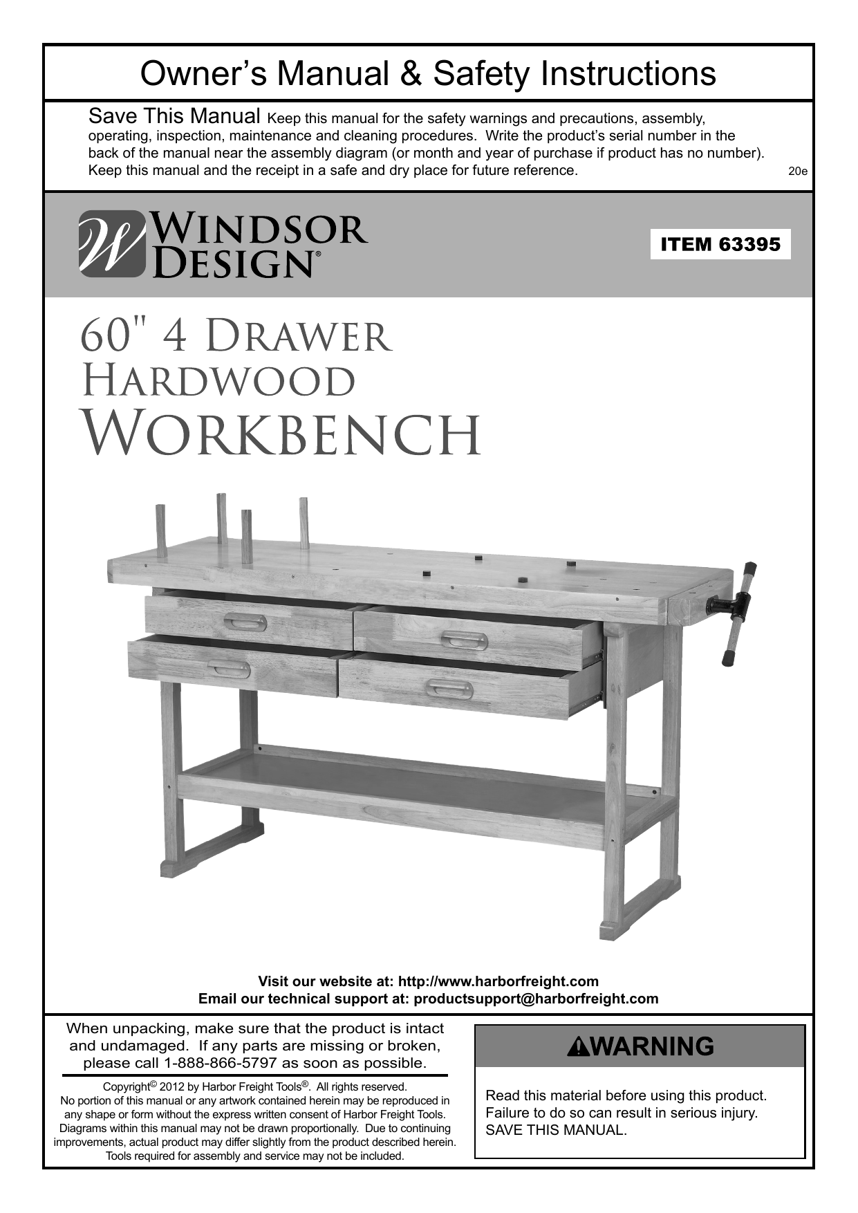 Windsor Design 63395 60 In 4 Drawer Hardwood Workbench Owner S Manual Manualzz